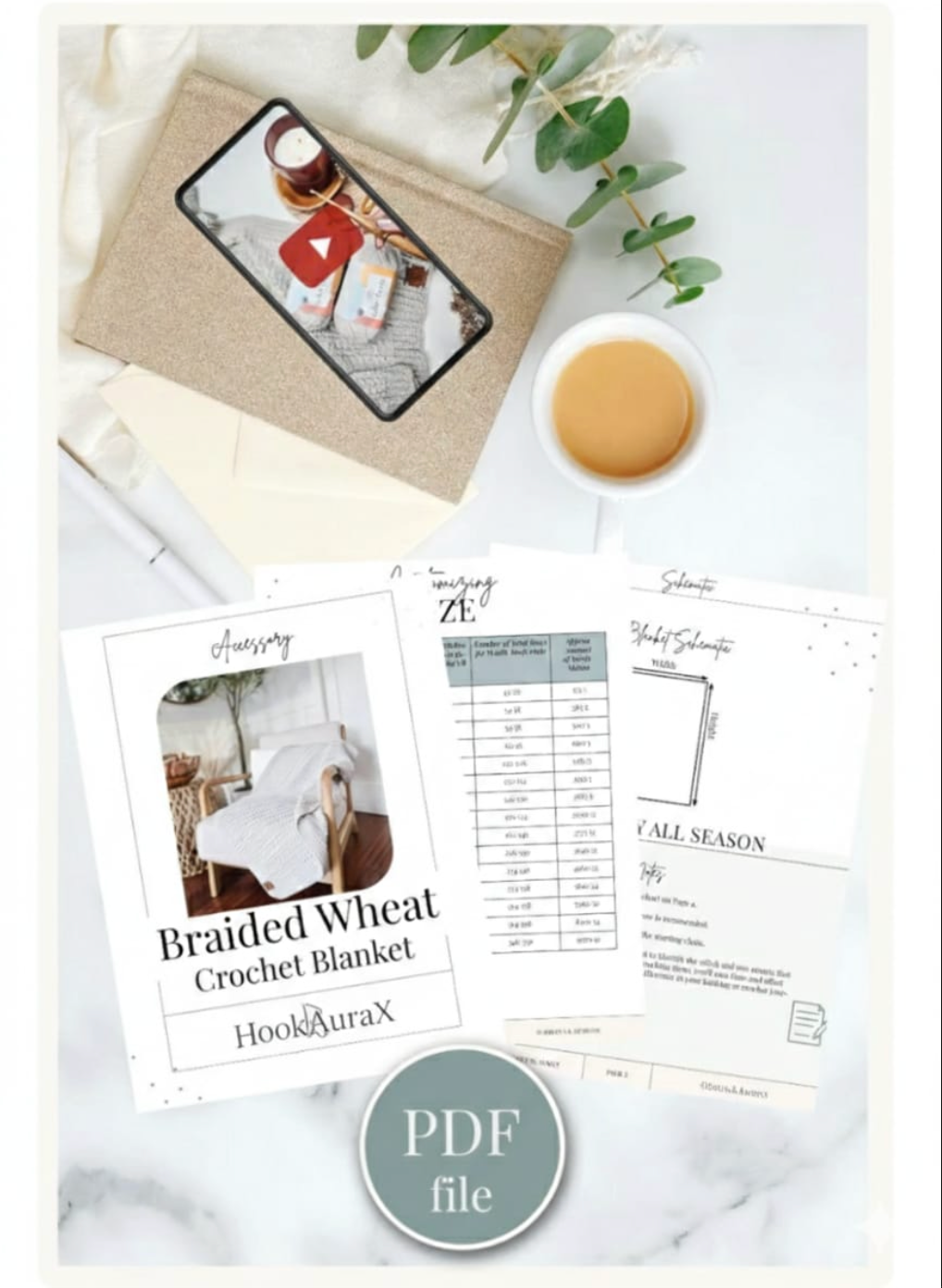 Braided Wheat Crochet Blanket Pattern PDF (16 Sizes)